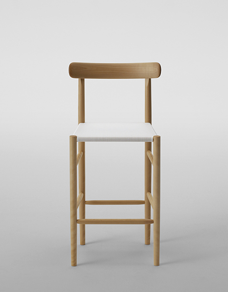 由Jasper Morrison为日本制造商Maruni设计的T Bar Stool在2016年的米兰家具展上亮相,为设计师旗下的家具产品再添一员。T Bar Stool采用3D木材加工技术,座椅、腿和靠背均由枫木制成,表层涂有透明的聚氨酯涂料。彩色弹簧钢带连接座椅和靠背,为一定程度的活动提高了舒适度。钢材的使用与木材也形成另一种对比。