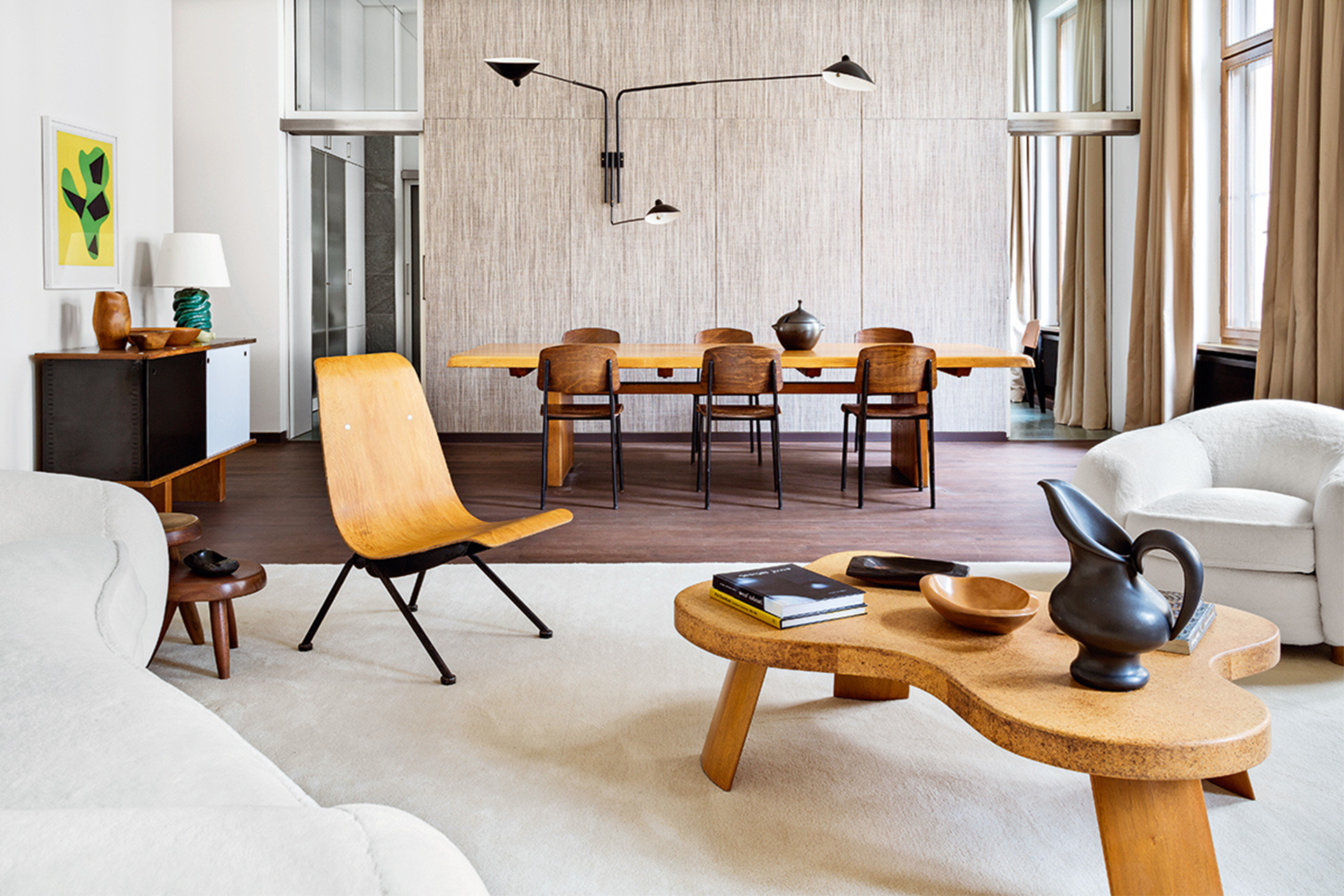 主要作为照明灯具设计者而闻名,Serge Mouille(1922-1988年)获得了巴黎应用艺术学院的银匠硕士文凭。他师从银匠兼雕塑师Gilbert LaCroix,1941年毕业后,他到了自己的工作室工作。1945年,Mouille本人成为了应用艺术学院的一名教师并开办了自己的金工工作室。当时,他的设计小组基本从事扶手、吊灯和壁灯的设计。1953年,Jacques Adnet雇佣他进行灯饰设计,随后的一生中,他都为Jacques Adnet尽心竭力。20世纪50年代,Mouille设计了大型昆虫状的壁挂灯,配有数个分枝和更小而弯曲的壁灯。期间他最著名的设计作品即其Oeil灯(1953年)、“Flammes”(1954年)和“Saturn”(1958年)。他不断工作,以期实现动态的雕塑美学引发空间运动的感觉。他还声称他的灯饰是对意大利模型的响应,于1950年开始进军市场。他认为这太过复杂。