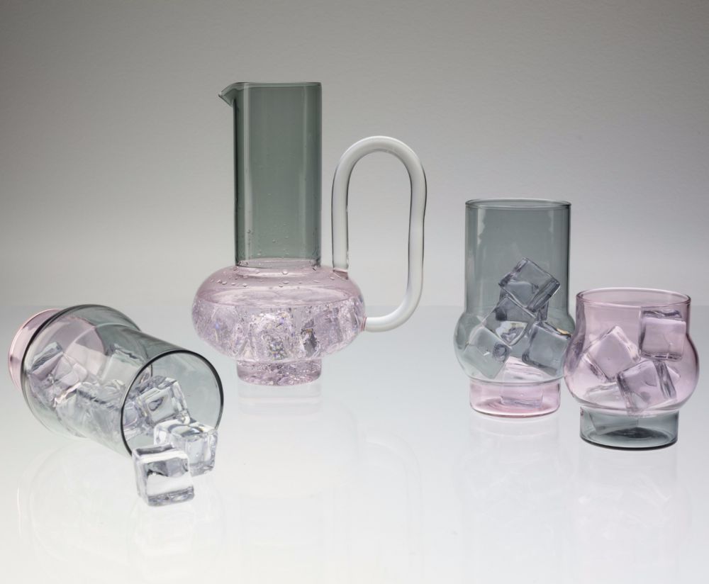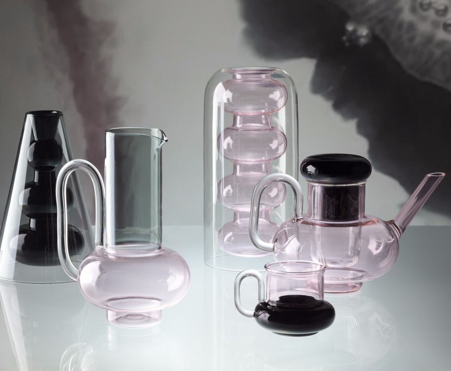 With these articles for measuring, brewing, steaming, cooling, pouring and preserving we are exploring the transformative alchemy of curious instruments and chemical reactions. Inspired by laboratory apparatus, Bump is an exercise in the manipulation of the conical, spherical and tubular building blocks that we love to play with, of double walled glassmaking and a play in transparency and translucence.Hand-wash in warm soapy water and dry with a soft cloth. Suitable for use with food. Always rinse before use. Not dish-washer safe. Do not use abrasive agents as this will damage the surface. The products are hand made and variations will occur. Colour may change over time due to the character of the material. Bump Jug has a capacity of 750mL.