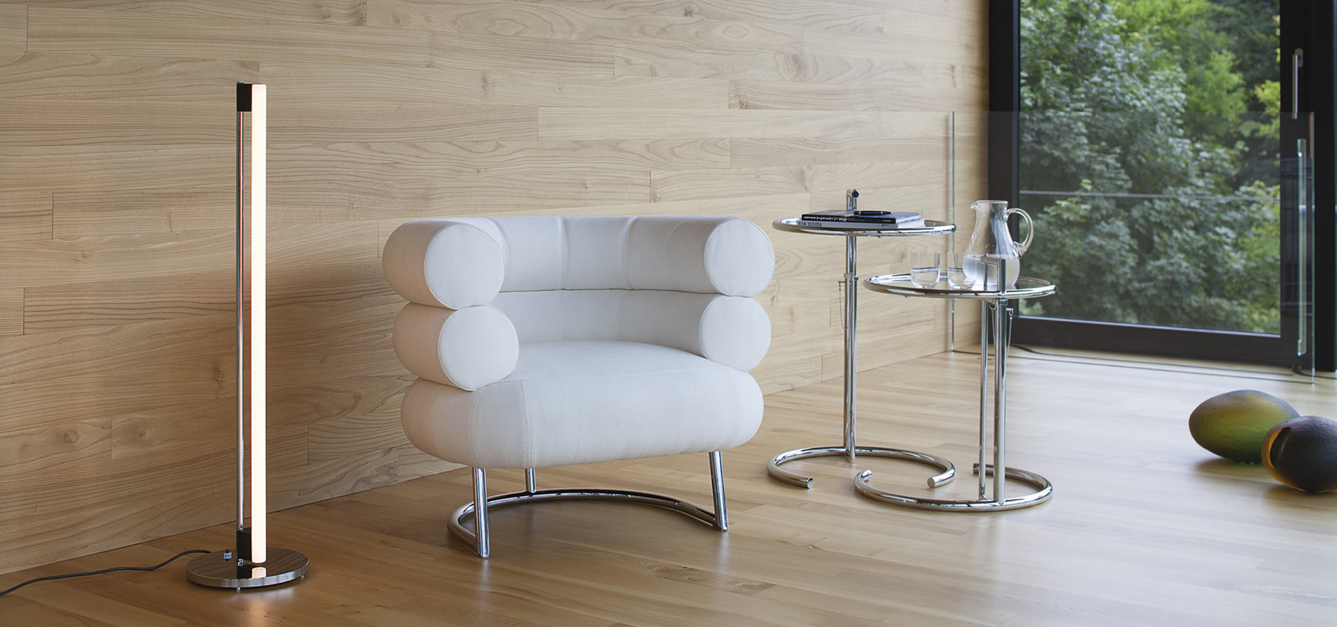 在她创作生涯的第二阶段 Eileen Gray 将重心转為建筑并持续创作了许多经典设计,简约现代的设计风格,却比 Le Corbusier 多了一分女性的婉约与装饰性,强烈而独特的个人色彩与她充满传奇性的一生,Eileen Gray 可说是划时代的艺术家。Eileen Gray 最具代表性的设计 E1027 可调式边几,被纽约 MOMA 博物馆列为永久收藏。