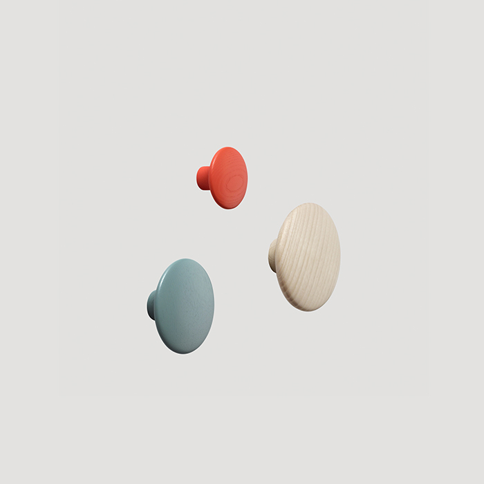 Lars Tornøe为Muuto设计的Dots系列打开了墙壁挂钩的新大门。Dots可以以任何分布形态,任何颜色组成安装在墙上。单独分布的特性也使Dots的使用领域拥有无限可能—可用于大厅,卧室和厨房,无论单独使用还是组合使用都将为房间增添一抹生机与活力。