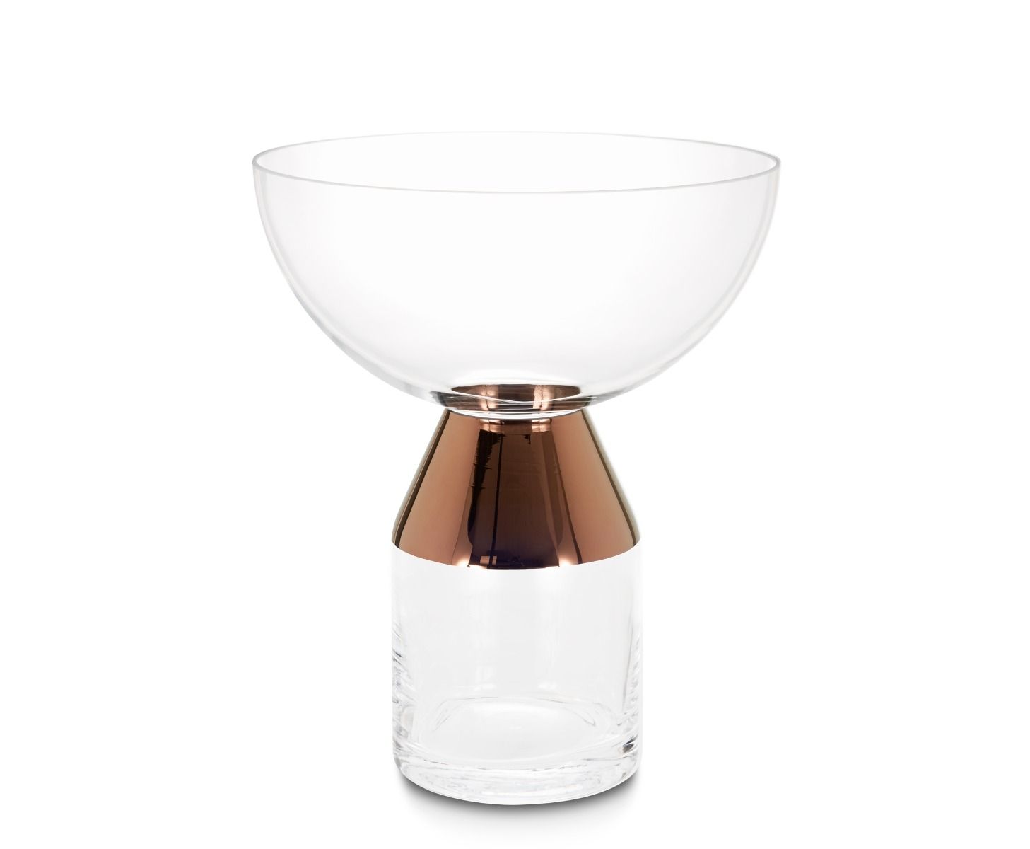 A generously proportioned mouth-blown glass vase with a hand-painted copper band.