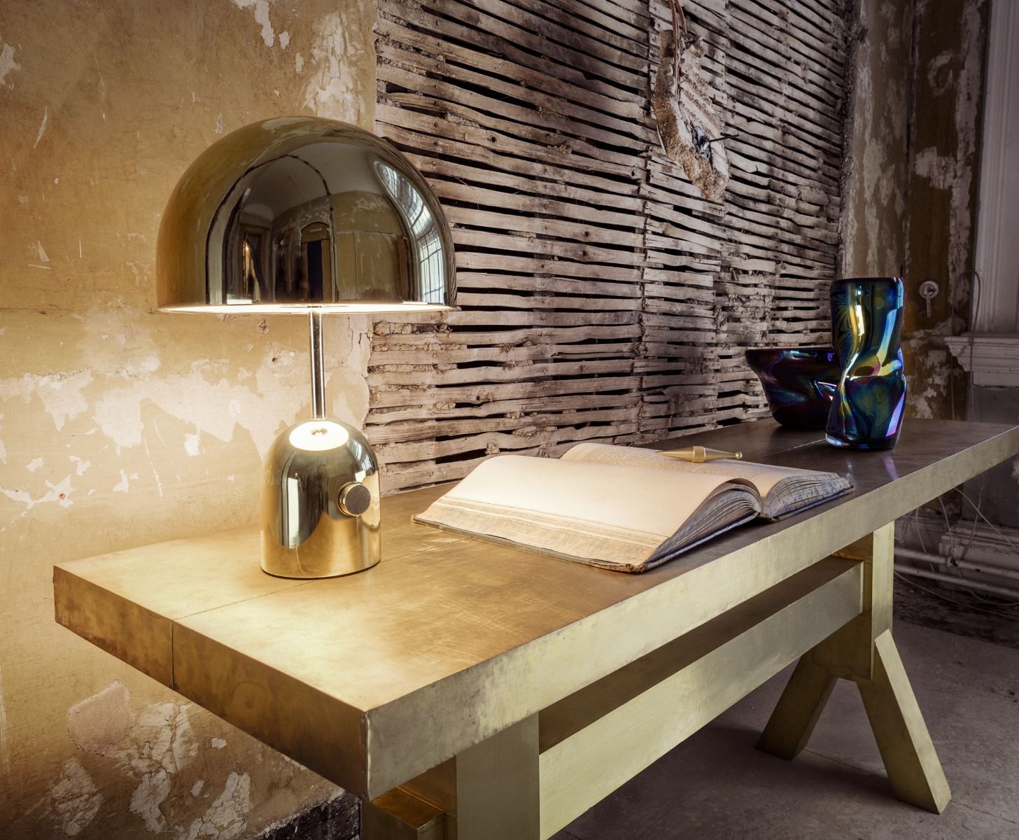 A series of opulent vases and bowls with a lustrous, iridescent finish inspired by the effect of a petrol spill on a wet day or a hummingbird's wing. Warp Vase is hand formed so each container is unique in colour, shape and texture.