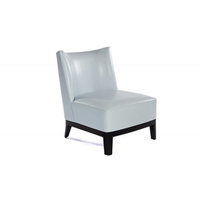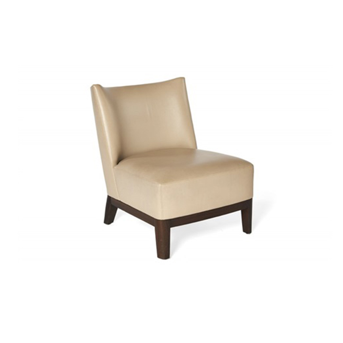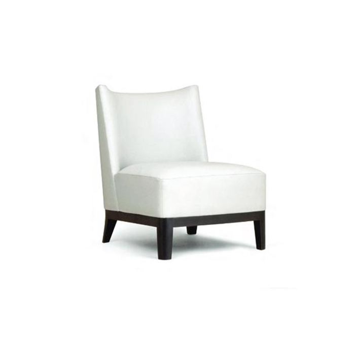 Mandarin Chair from Christian Liaigre, an upholstered lounge chair with curved back and tightly upholstered seat. Wood base in Mahogany or Oak.