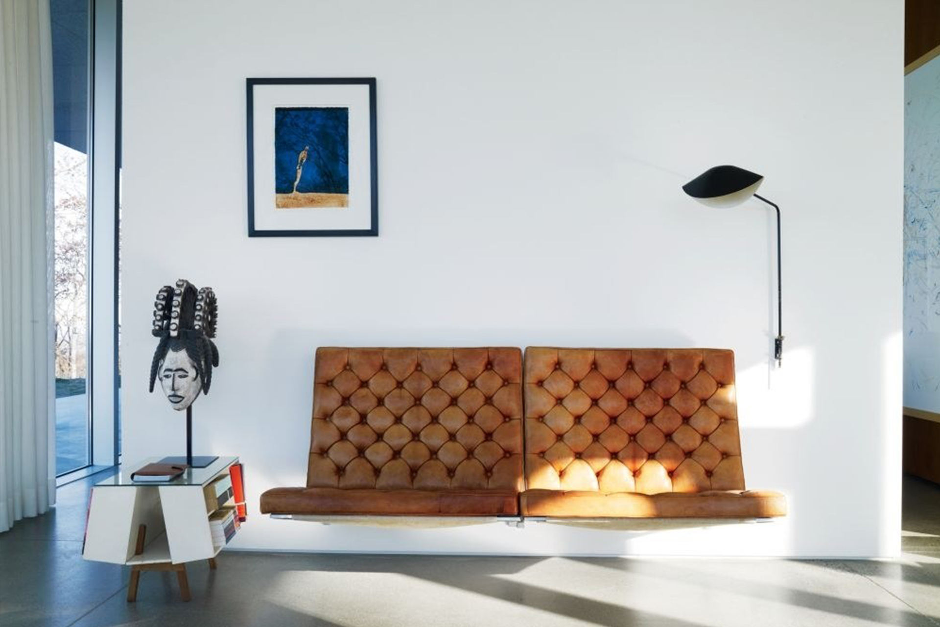 Known primarily for his work as a designer of lighting fixtures, Serge Mouille (1922-1988) designed large, angular, insect-like wall mounted and standing lamps with several arms and smaller, more curved wall-sconces. Some of his best known designs from the period are his “Oeil” lamp (1953), “Flammes” (1954) and “Saturn” (1958). He worked to achieve a kinetic, sculptural aesthetic that evoked a sense of movement in space. He also claimed his lighting fixtures were “a reaction to the Italian models, which were beginning to invade the market in 1950,” and which he thought to be “too complicated.” His designs from this period were shown mainly at the Steph Simon Gallery in Paris. Towards the end of the 1950s the invention of neon tubes inspired Mouille to create a series of floor lamps that combined incandescence and fluorescence. These designs, called the “Colonnes” collection, had their debut at the 1962 Salon for interior design, and are some of his better known later works.For his career as a metal smith and designer he was awarded a medal from the City of Paris from the Directors of Professional Artists