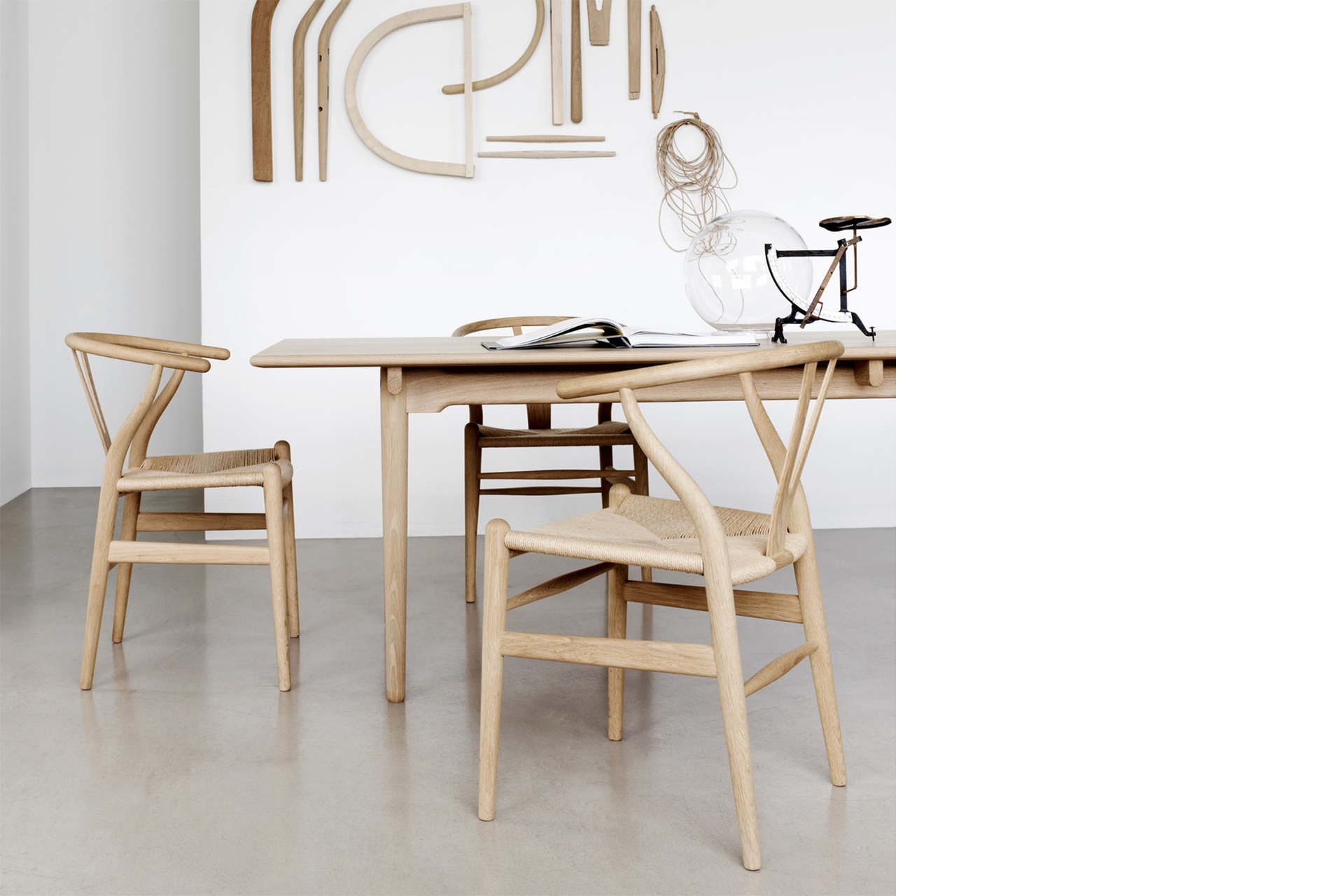 The Wishbone Chair was one of the very first models Hans J. Wegner designed especially for Carl Hansen & Son and has been in continuous production since 1950. With a design that is uniquely its own, the Wishbone Chair holds a special position in the world of modern design. This iconic design was the last part of a Wegner series inspired by portraits of Danish merchants sitting in Chinese Ming Dynasty chairs. Wegner took a giant leap in furniture design with the series, combining the top rails and arms into a single piece. The characteristic Y-shaped back provides comfortable support while giving stability to the steam-bent top. Many view the Wishbone Chair as an ideal chair as it fulfills the functional demands for comfort and stability while having a distinct look. In other words: it captures the essence of modern Danish design.