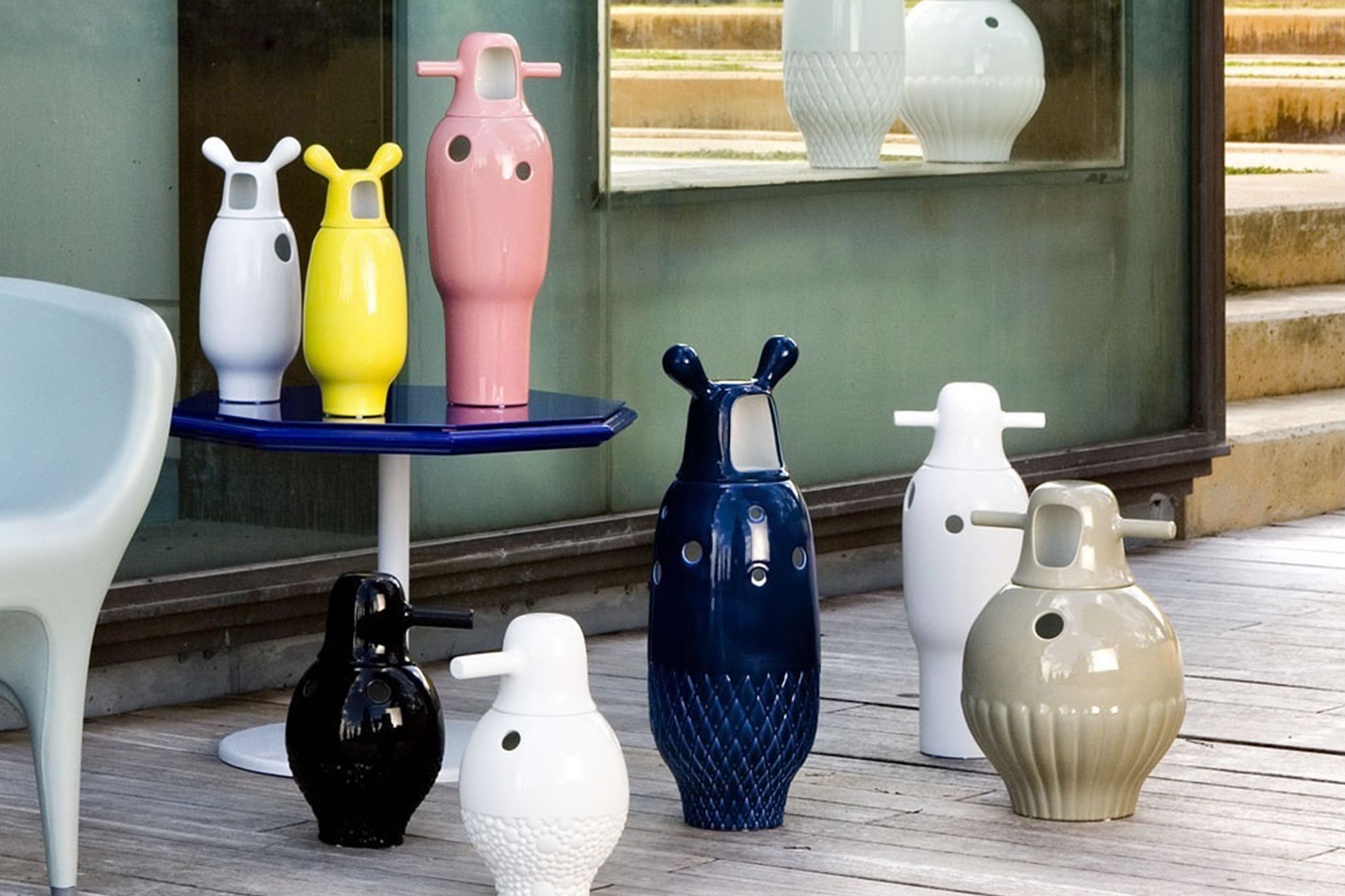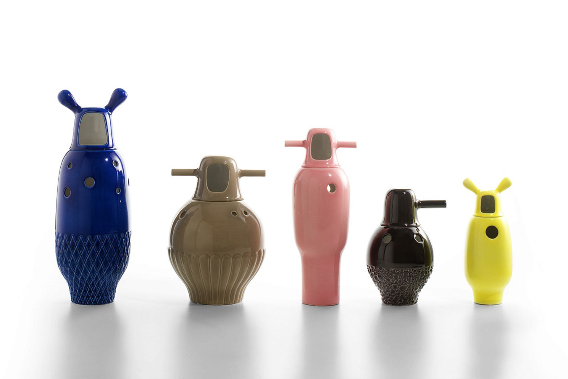 Jaime Hayon是新西班牙设计中一个非常有趣的设计师,他的作品极具活力同时也很有个人风格,来自BD Barcelona的Showtime Vases系列便是Hayon活泼新颖设计风格的体现。Showtime系列花瓶是搪瓷材质,整体由两部分组成。颜色组成有两种选择,一种是内外部同色,皆为白色;另一种是白色内里,外部为不同可选颜色。