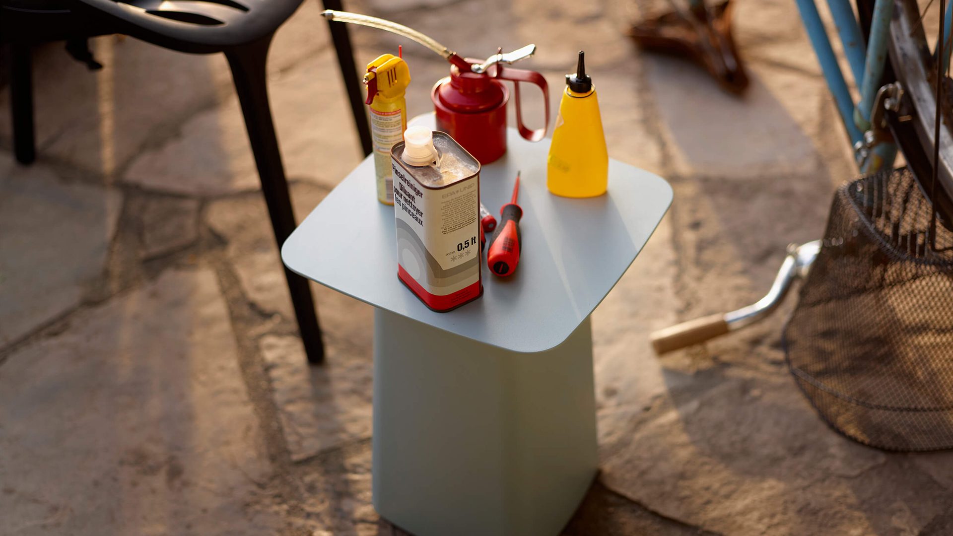出自Ronan&Erwan Bouroullec 2004年为Vitra设计的作品,浓浓的集合风格,搭配金属元素,让它自然呈现利落大方;梯形方筒的桌脚造型,让原先低调的几何元素,多了一分可爱逗趣,更让桌面有着更稳固的支撑效益。