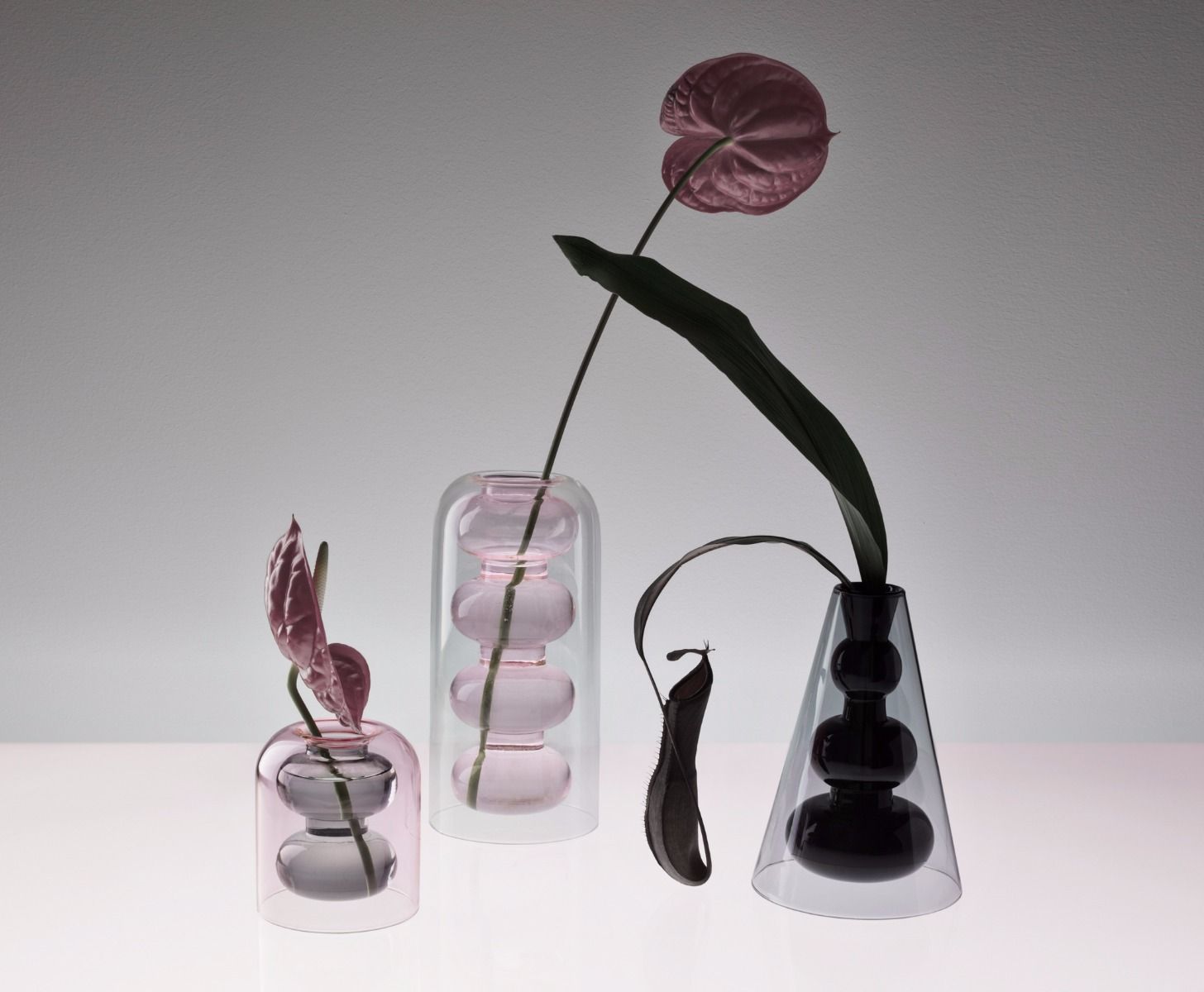 With these articles for measuring, brewing, steaming, cooling, pouring and preserving we are exploring the transformative alchemy of curious instruments and chemical reactions. Inspired by laboratory apparatus, Bump is an exercise in the manipulation of the conical, spherical and tubular building blocks that we love to play with, of double walled glassmaking and a play in transparency and translucence.Hand-wash in warm soapy water and dry with a soft cloth. Suitable for use with food. Always rinse before use. Not dish-washer safe. Do not use abrasive agents as this will damage the surface. The products are hand made and variations will occur. Colour may change over time due to the character of the material.